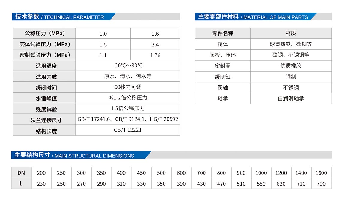 蝶形緩閉止回閥主要用于凈水、原水、污水、海水等介質(zhì)的供、排水管道上,安裝在水泵出口處,用以截斷介質(zhì)的回流,消除水錘,保護(hù)管道、水泵的安全運(yùn)行。其主要特點(diǎn):體形小、重量輕、結(jié)構(gòu)長度只有旋啟式止回閥的三分之一左右。帶外置阻尼油缸,緩閉性能優(yōu)良,不受管道中介質(zhì)的影響,閥瓣先速關(guān)后緩閉,可防止破環(huán)性水錘。橡膠軟密封,結(jié)構(gòu)密封性能好,耐磨損,使用壽命長。橡膠緩沖,運(yùn)行平穩(wěn),無震動及噪音,比老式止回閥流阻小,有明顯的節(jié)能效果。